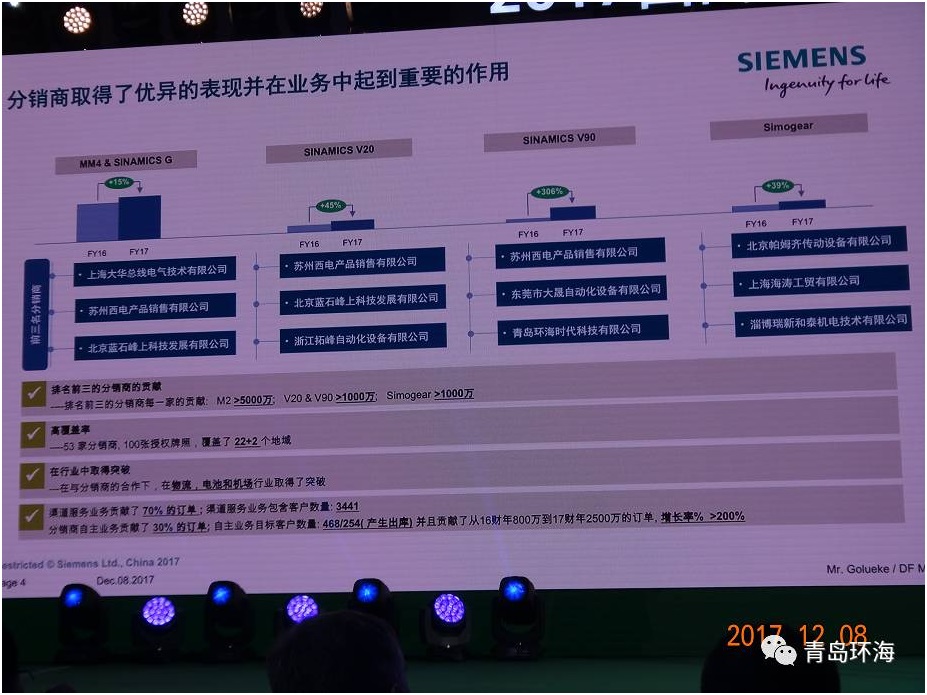 “好伙伴,加油!”—— 2017西门子数字化工厂及过程工业与驱动分销商大会于2017年12月7日-9日在三亚香格里拉度假酒店隆重举行, 青岛环海时代科技有限公司袁总张总等4人参加。会议继往开来,总结2017展望2018,分享成功经验,共商新财年发展大计!