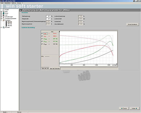 即使在最恶劣的情况下也可以模拟和可视化您的电机的起动和斜坡降速,例如在高惯量和频繁开关的情况下。因此,您可以选到最佳的软起动器。