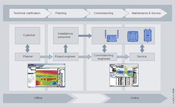 集成的目录包含所有SIMATIC NET WLAN设备(包含天线)—它也可使用任何IEEE 802.11.a、b、g 设备和天线来扩展。对于一个或分布群中的多个的SIMATIC NET WLAN设备,离线配置是可行的。