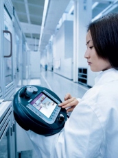 基于Windows CE的手持式面板,用于靠近机器的具有组合键和三个变量的触摸操作的移动式HMI,用于PROFIBUS环境和与PROFINET连接的相应变量。
