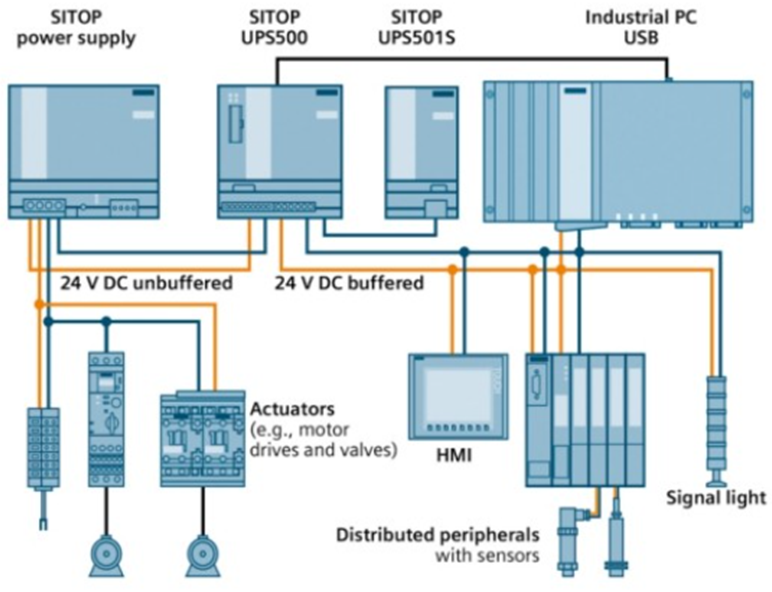 在很多基于 PC的自动化解决方案中,通过将装置置于定义的状态,可防止电源故障带来的严重损坏。通常要用大约一分钟来备份必要的运行数据,随后以可控方式将PC 关闭。SITOPUPS500 的双层电容器可为此过程提供充足电源。